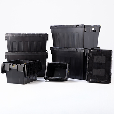 Our selection of recycled black attached lid containers is more than just storage boxes; it represents a commitment to sustainability. Crafted from 100% recycled plastic, these containers eliminate the need for new plastic production, significantly reducing their environmental impact. Ideal for logistics environments, these boxes serve as secure, returnable packaging, offering a sustainable solution for professional storage needs.